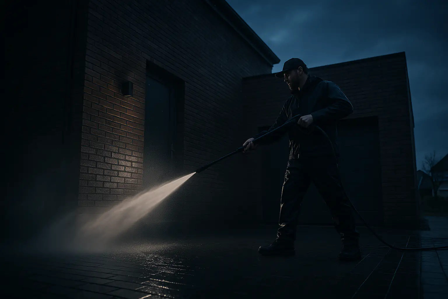 Gevel reinigen met druk op maat per materiaal. Veilig voor baksteen, beton en pleister.